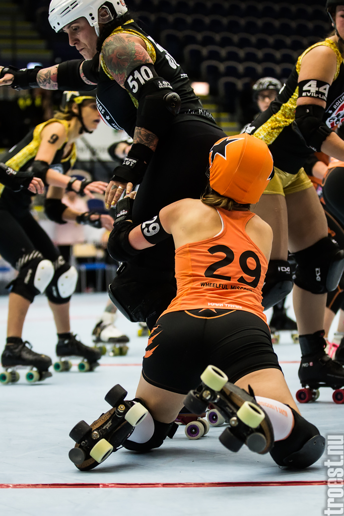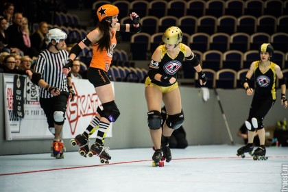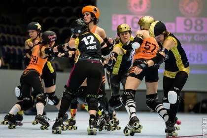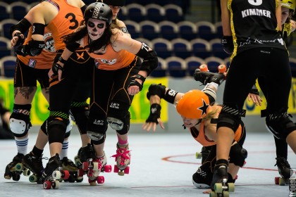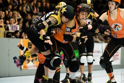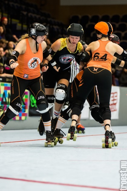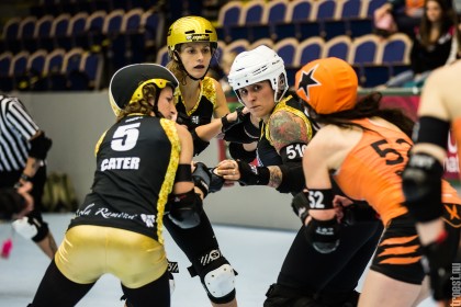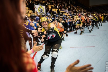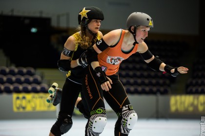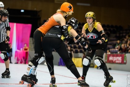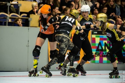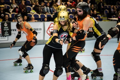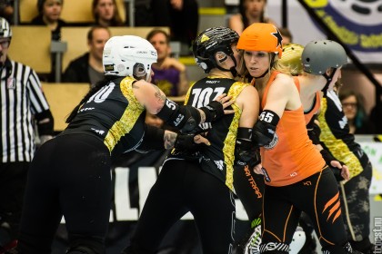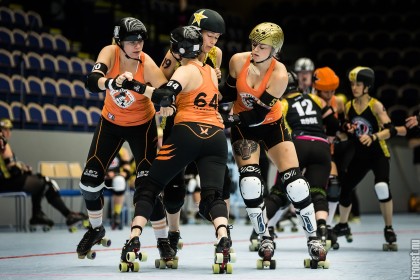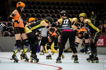 Great tournament in the weekend of 14-16 November 2014. Copenhagen Roller Derby played 3 matches, but unfortunately I could only cover the 2. Here’s the first – a nice win against the awesome Oslo Roller Derby. And yes, this was one of the “funniest” games I’ve seen this year – no holding back – pure mayhem.